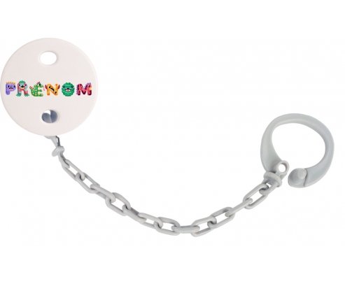 Su7.fr vous propose l'adorable attache sucette avec personnalisation alphabet rigolo: Attache-tétine Prénom ou texte personnalisée alphabet style-51 Une solution idéale pour créer des accessoires très personnels à votre enfant.