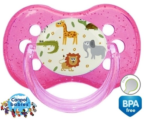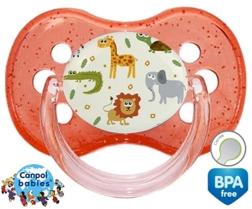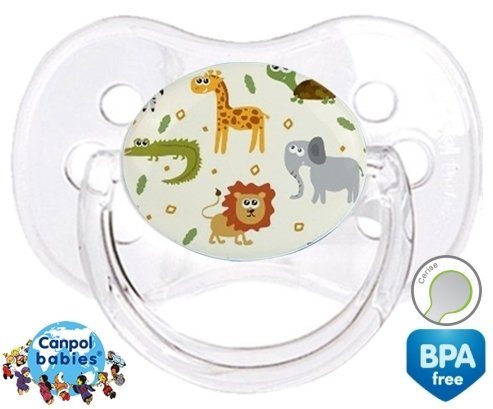 Tetine personnalisee pour bébé Animaux de la jungle à embout Cerise en silicone de la marque Canpol Babies avec impression en en Couleurs de la collection Design / Motif.La silicone se reconnaît par sa couleur transparente. C'est une matière souple, douce, sans goût ni odeur et offre à bébé une succion plus facile grâce à sa souplesse.