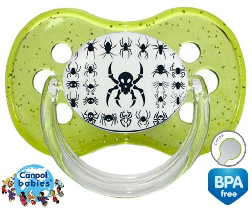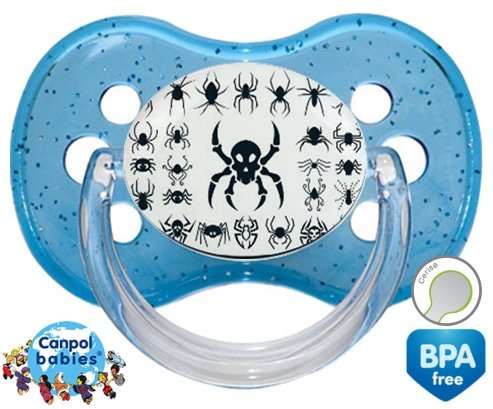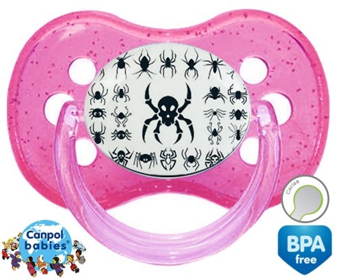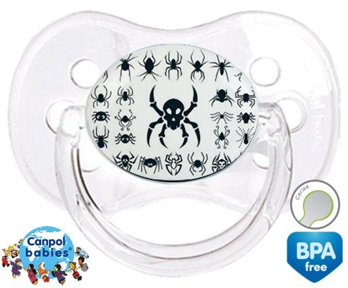 Sucette personnalisée pour bébé Arraigné à embout Cerise en silicone de la marque Canpol Babies avec impression en en Couleurs de la collection Design / Motif.La silicone se reconnaît par sa couleur transparente. C'est une matière souple, douce, sans goût ni odeur et offre à bébé une succion plus facile grâce à sa souplesse.
