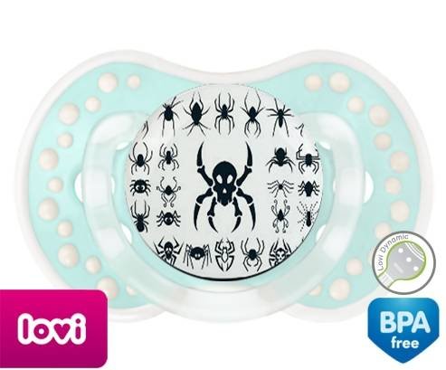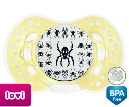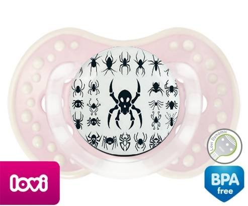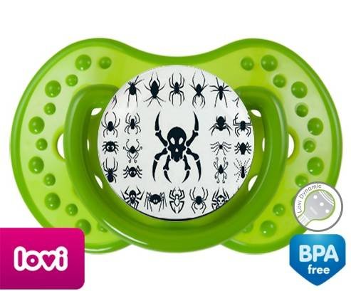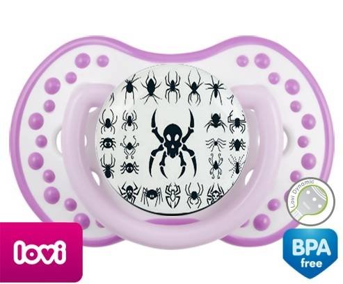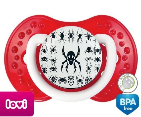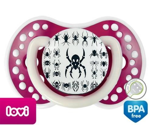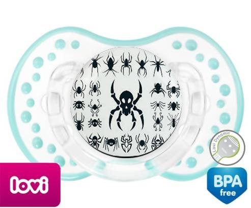 Tétine personnalisée pour bébé Arraigné à embout LOVI Dynamic en silicone de la marque Lovi Dynamic avec impression en en Couleurs de la collection Design / Motif.La silicone se reconnaît par sa couleur transparente. C'est une matière souple, douce, sans goût ni odeur et offre à bébé une succion plus facile grâce à sa souplesse.