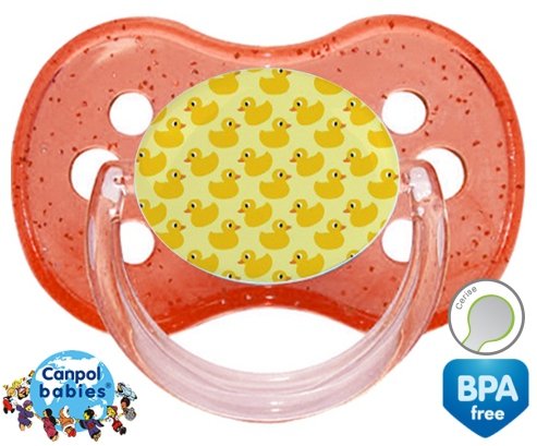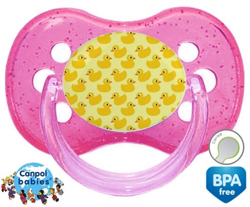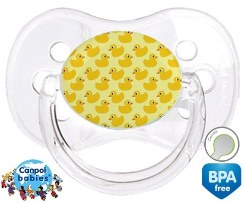 Tetine personnalisee pour bébé Canard à embout Cerise en silicone de la marque Canpol Babies avec impression en en Couleurs de la collection Design / Motif.La silicone se reconnaît par sa couleur transparente. C'est une matière souple, douce, sans goût ni odeur et offre à bébé une succion plus facile grâce à sa souplesse.