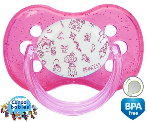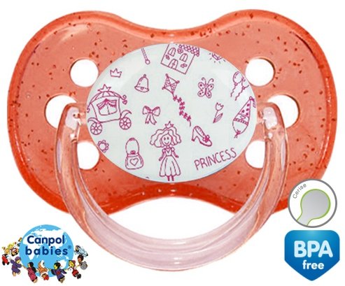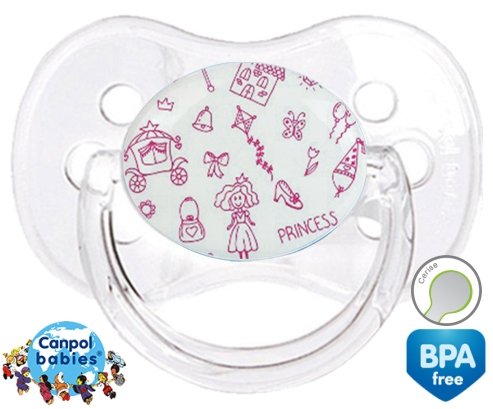 Sucette personnalisée pour bébé Carosse à embout Cerise en silicone de la marque Canpol Babies avec impression en en Couleurs de la collection Design / Motif.La silicone se reconnaît par sa couleur transparente. C'est une matière souple, douce, sans goût ni odeur et offre à bébé une succion plus facile grâce à sa souplesse.