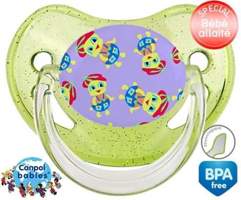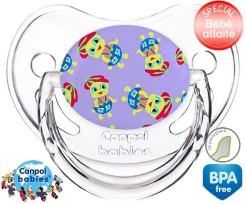 Tétine personnalisée pour bébé Cartoon à embout Physiologique en silicone de la marque Canpol Babies avec impression en en Couleurs de la collection Design / Motif.La silicone se reconnaît par sa couleur transparente. C'est une matière souple, douce, sans goût ni odeur et offre à bébé une succion plus facile grâce à sa souplesse.