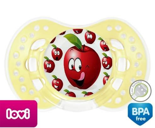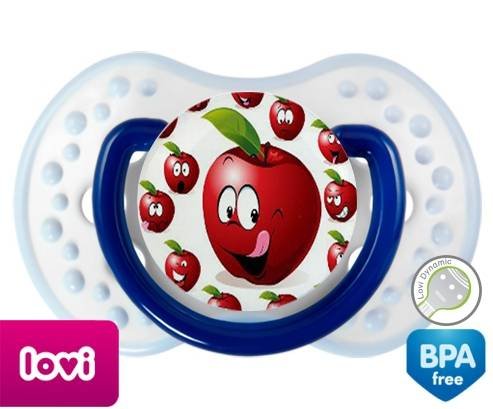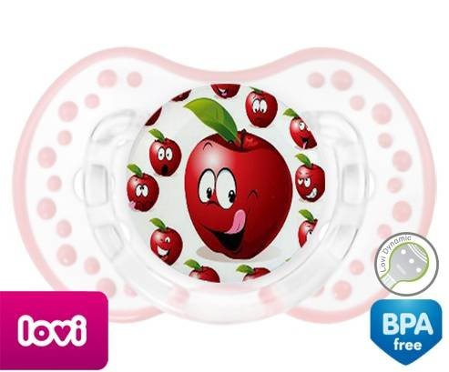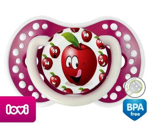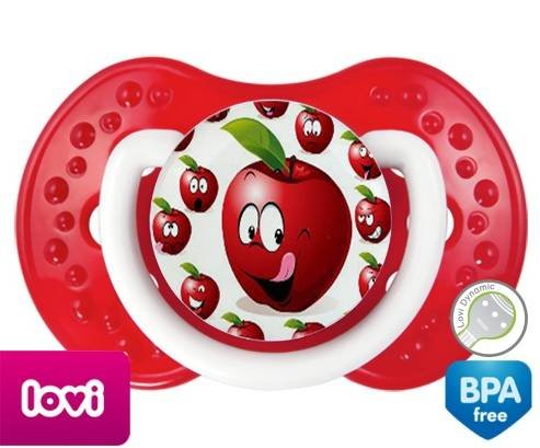 Sucette personnalisée pour bébé Cerise à embout LOVI Dynamic en silicone de la marque Lovi Dynamic avec impression en en Couleurs de la collection Design / Motif.La silicone se reconnaît par sa couleur transparente. C'est une matière souple, douce, sans goût ni odeur et offre à bébé une succion plus facile grâce à sa souplesse.
