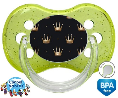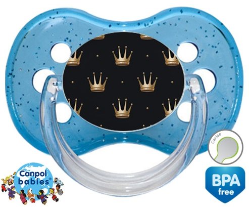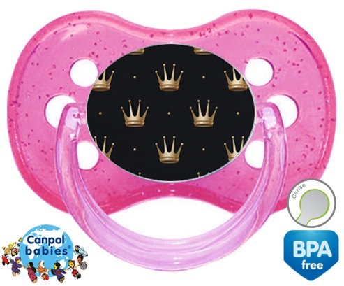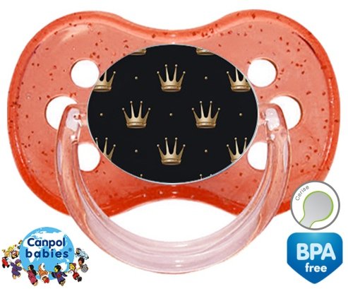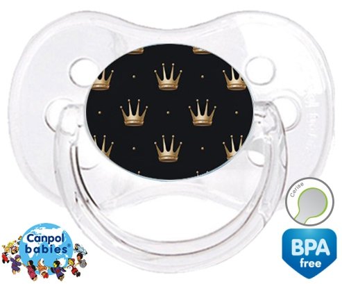 Tetine personnalisee pour bébé Couronne doré à embout Cerise en silicone de la marque Canpol Babies avec impression en en Couleurs de la collection Design / Motif.La silicone se reconnaît par sa couleur transparente. C'est une matière souple, douce, sans goût ni odeur et offre à bébé une succion plus facile grâce à sa souplesse.