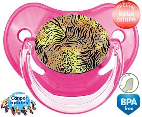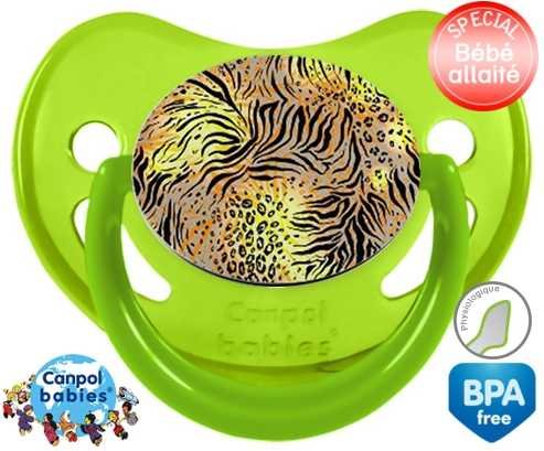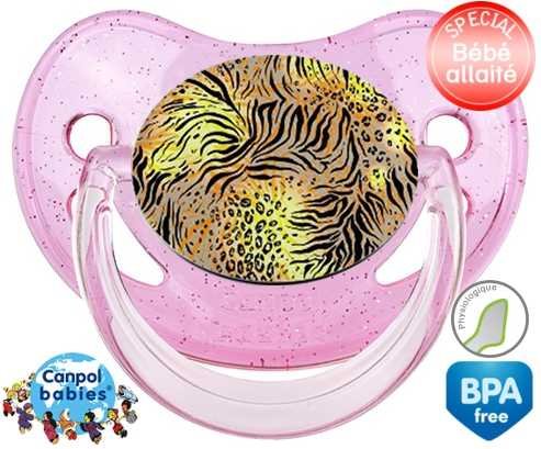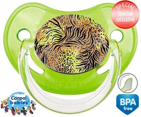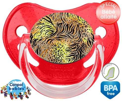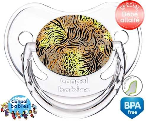 Sucette personnalisée pour bébé Leopard à embout Physiologique en silicone de la marque Canpol Babies avec impression en en Couleurs de la collection Design / Motif.La silicone se reconnaît par sa couleur transparente. C'est une matière souple, douce, sans goût ni odeur et offre à bébé une succion plus facile grâce à sa souplesse.
