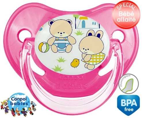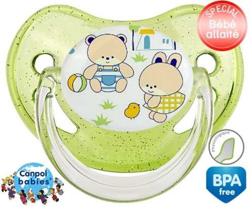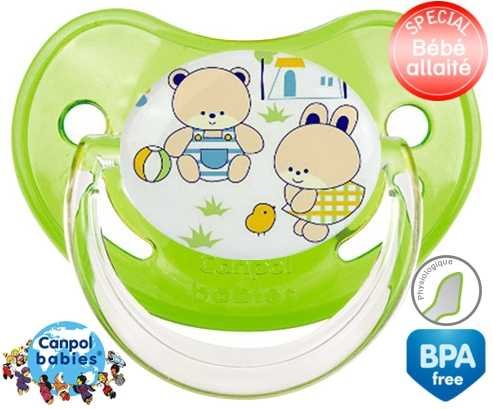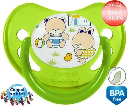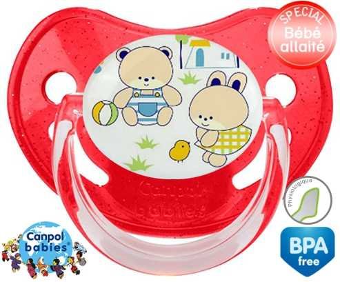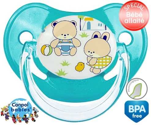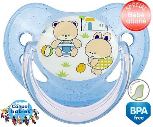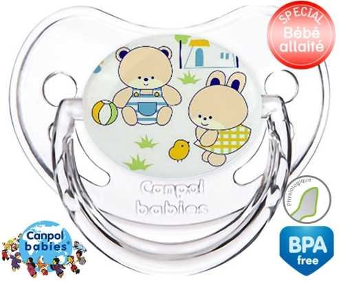 Tétine personnalisée pour bébé Nounours style1 à embout Physiologique en silicone de la marque Canpol Babies avec impression en en Couleurs de la collection Design / Motif.La silicone se reconnaît par sa couleur transparente. C'est une matière souple, douce, sans goût ni odeur et offre à bébé une succion plus facile grâce à sa souplesse.