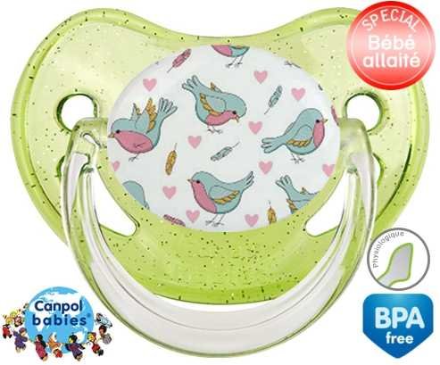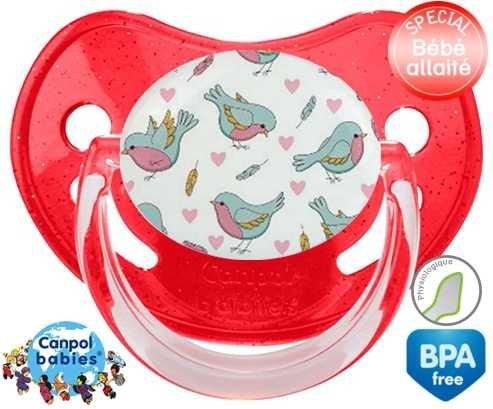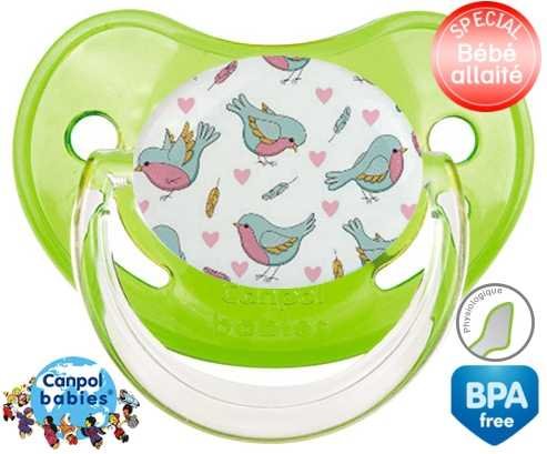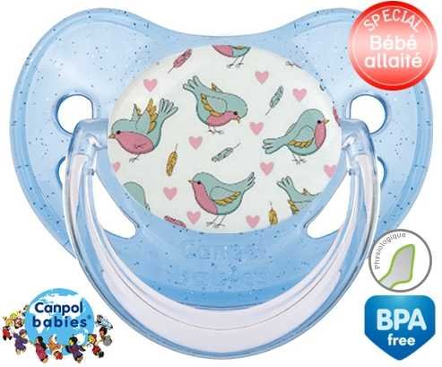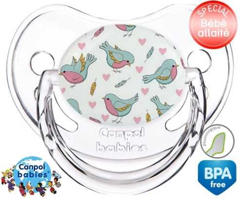 Sucette personnalisée pour bébé Oiseaux style2 à embout Physiologique en silicone de la marque Canpol Babies avec impression en en Couleurs de la collection Design / Motif.La silicone se reconnaît par sa couleur transparente. C'est une matière souple, douce, sans goût ni odeur et offre à bébé une succion plus facile grâce à sa souplesse.