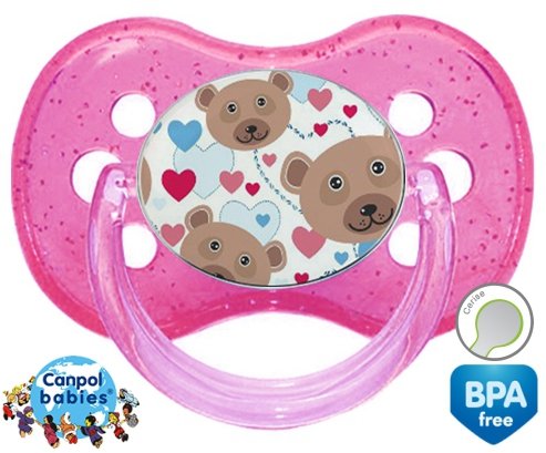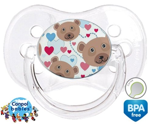 Tetine personnalisee pour bébé Oursons à embout Cerise en silicone de la marque Canpol Babies avec impression en en Couleurs de la collection Design / Motif.La silicone se reconnaît par sa couleur transparente. C'est une matière souple, douce, sans goût ni odeur et offre à bébé une succion plus facile grâce à sa souplesse.