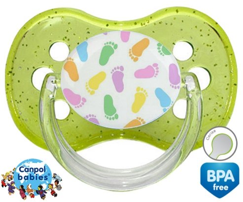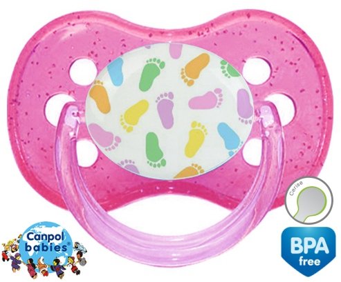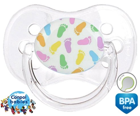 Sucette personnalisée pour bébé Pieds à embout Cerise en silicone de la marque Canpol Babies avec impression en en Couleurs de la collection Design / Motif.La silicone se reconnaît par sa couleur transparente. C'est une matière souple, douce, sans goût ni odeur et offre à bébé une succion plus facile grâce à sa souplesse.