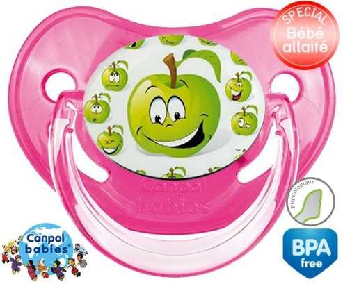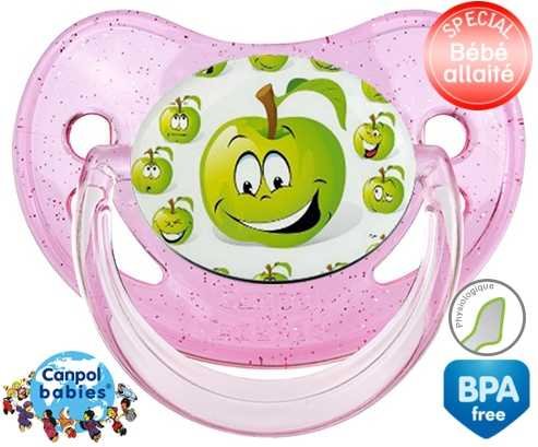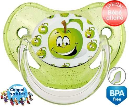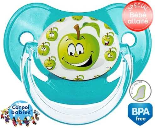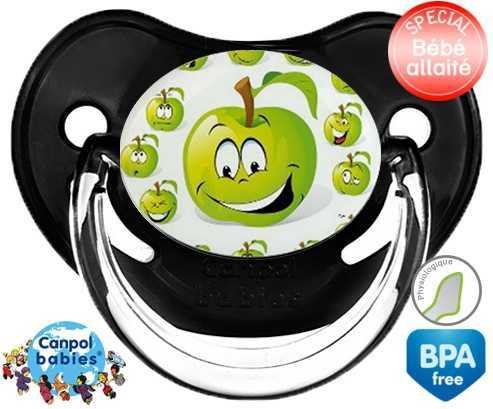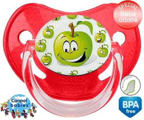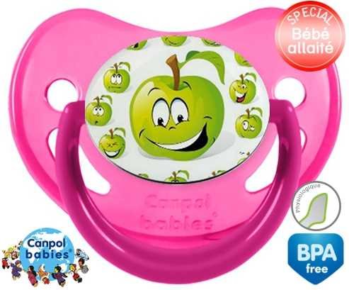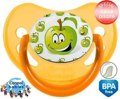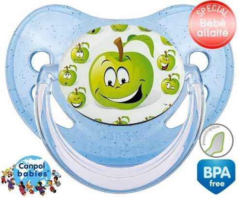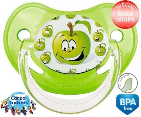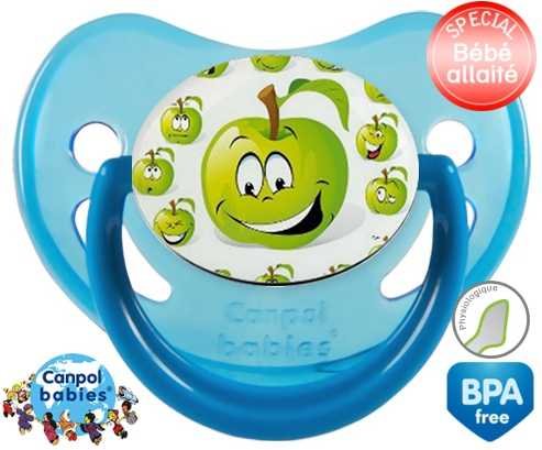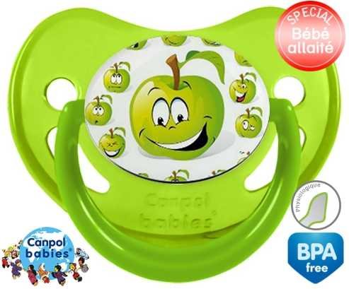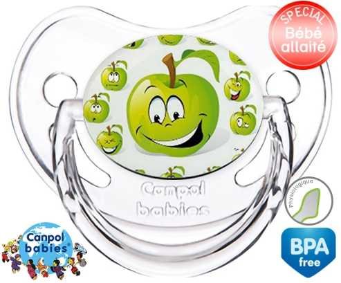 Sucette personnalisée pour bébé Pomme à embout Physiologique en silicone de la marque Canpol Babies avec impression en en Couleurs de la collection Design / Motif.La silicone se reconnaît par sa couleur transparente. C'est une matière souple, douce, sans goût ni odeur et offre à bébé une succion plus facile grâce à sa souplesse.