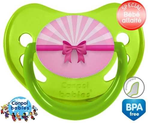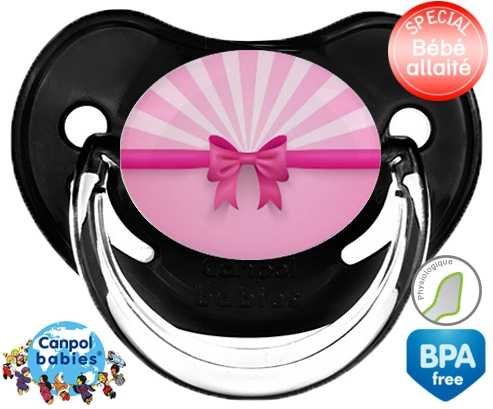 Tetine personnalisee pour bébé Princesse noeud à embout Physiologique en silicone de la marque Canpol Babies avec impression en en Couleurs de la collection Design / Motif.La silicone se reconnaît par sa couleur transparente. C'est une matière souple, douce, sans goût ni odeur et offre à bébé une succion plus facile grâce à sa souplesse.