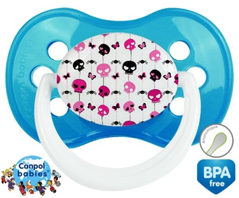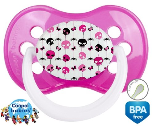 Sucette personnalisée pour bébé Rebelle à embout Anatomique en silicone de la marque Canpol Babies avec impression en en Couleurs de la collection Design / Motif.La silicone se reconnaît par sa couleur transparente. C'est une matière souple, douce, sans goût ni odeur et offre à bébé une succion plus facile grâce à sa souplesse.