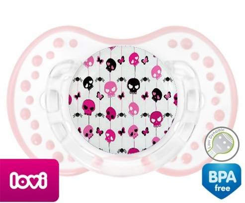 Sucette personnalisée pour bébé Rebelle à embout LOVI Dynamic en silicone de la marque Lovi Dynamic avec impression en en Couleurs de la collection Design / Motif.La silicone se reconnaît par sa couleur transparente. C'est une matière souple, douce, sans goût ni odeur et offre à bébé une succion plus facile grâce à sa souplesse.