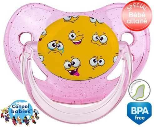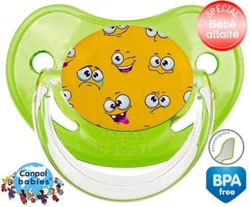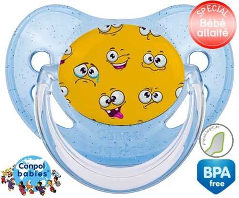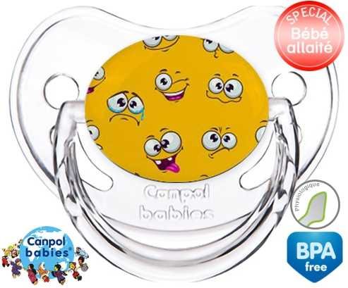 Tétine personnalisée pour bébé Smiley à embout Physiologique en silicone de la marque Canpol Babies avec impression en en Couleurs de la collection Design / Motif.La silicone se reconnaît par sa couleur transparente. C'est une matière souple, douce, sans goût ni odeur et offre à bébé une succion plus facile grâce à sa souplesse.