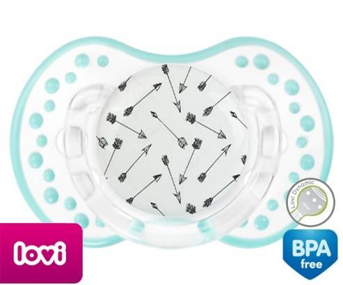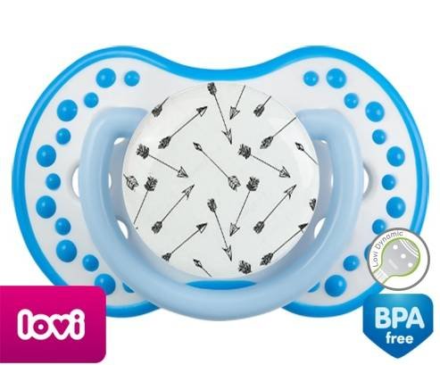 Tétine personnalisée pour bébé Tribal à embout LOVI Dynamic en silicone de la marque Lovi Dynamic avec impression en en Couleurs de la collection Design / Motif.La silicone se reconnaît par sa couleur transparente. C'est une matière souple, douce, sans goût ni odeur et offre à bébé une succion plus facile grâce à sa souplesse.