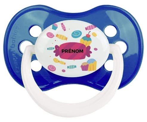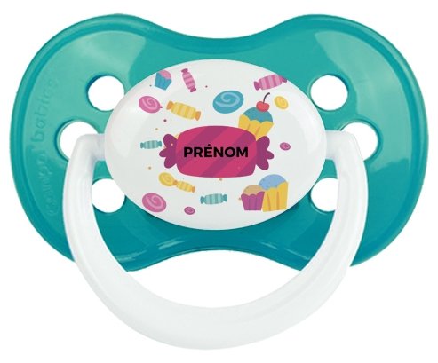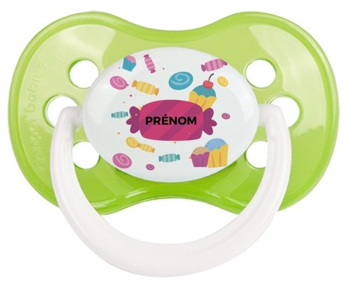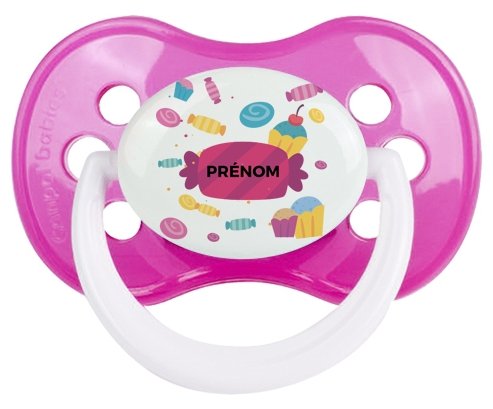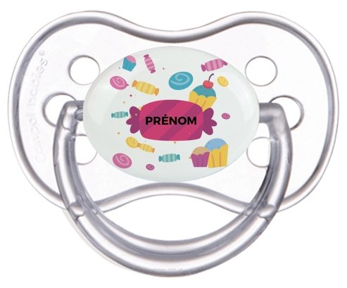 Tetine bébé personnalisée design : Bonbons anniversaire + prénom : Embout Anatomique en silicone de la marque Canpol Babies avec impression en couleur.un cadeau idéal pour vos bébés. Nos sucettes sont conçues avec l'aide de pédiatres et de dentistes pour respecter la physiologie de bébé et répondre à son réflexe naturel de succion.