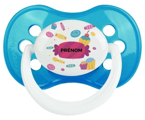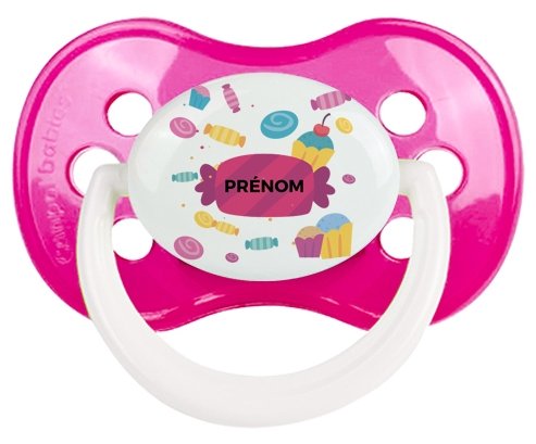 Tetine Bonbons anniversaire + prénom embout Anatomique