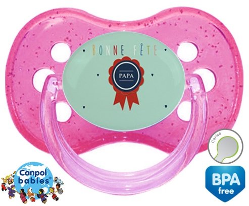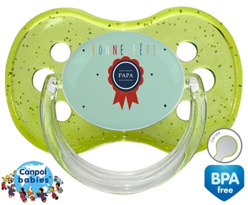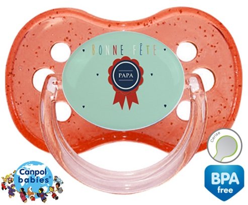 Tetine personnalisee pour bébé Bonne fête papa style7 à embout Cerise en silicone de la marque Canpol Babies avec impression en en Couleurs de la collection Fête et Événement.La silicone se reconnaît par sa couleur transparente. C'est une matière souple, douce, sans goût ni odeur et offre à bébé une succion plus facile grâce à sa souplesse.