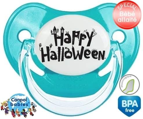 Tetine bébé personnalisée Happy halloween 2 : Embout Physiologique en silicone de la marque Canpol Babies avec impression en gris.