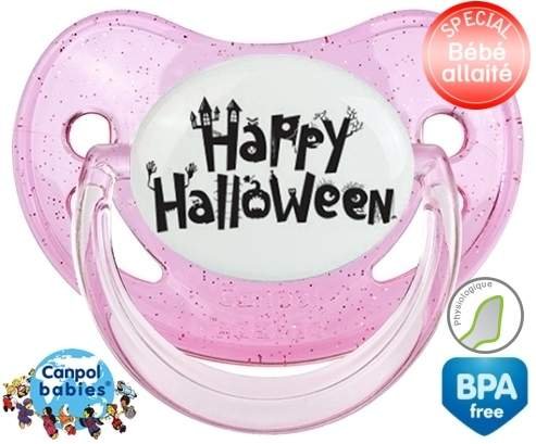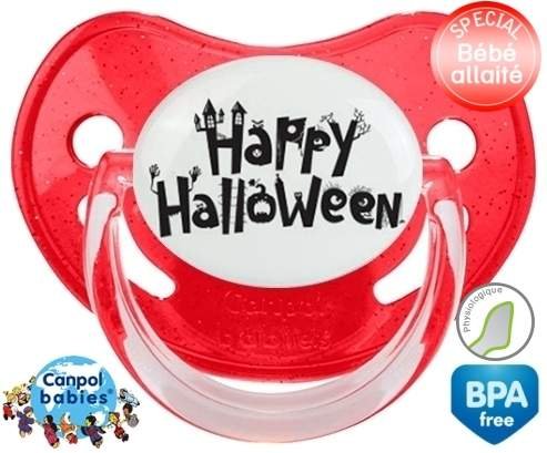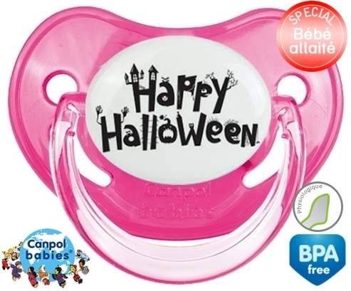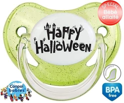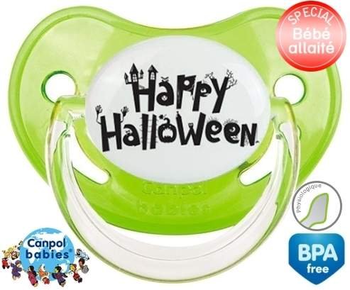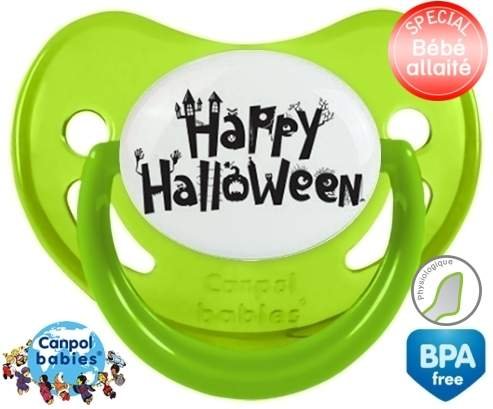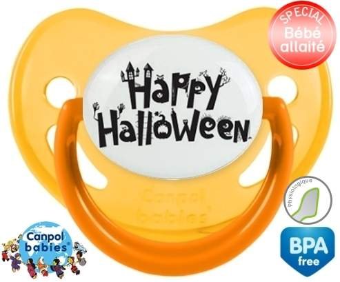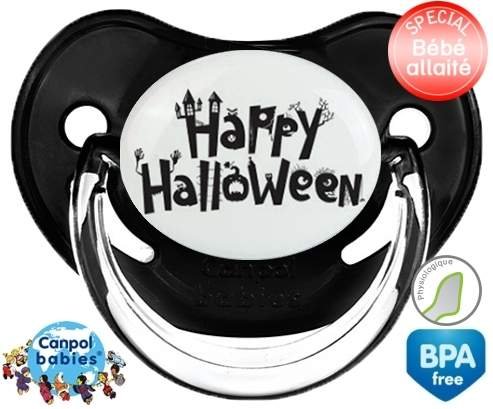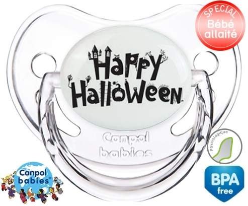 Tetine personnalisee pour bébé Happy halloween 2 à embout Physiologique en silicone de la marque Canpol Babies avec impression en en Gris de la collection Fête et Événement.La silicone se reconnaît par sa couleur transparente. C'est une matière souple, douce, sans goût ni odeur et offre à bébé une succion plus facile grâce à sa souplesse.