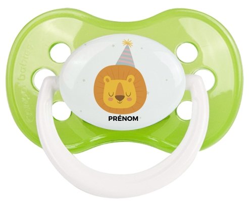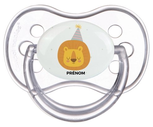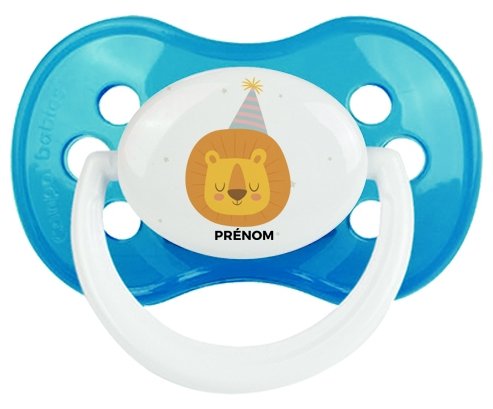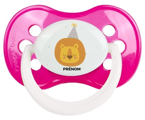 Offrez à votre bébé une sucette personnalisée unique, idéale pour les fêtes et événements. Cette tétine anatomique allie confort grâce à son embout plat symétrique et douceur avec un design lion d'anniversaire subtilement imprimé. Personnalisez-la avec le prénom de votre enfant pour un cadeau à la fois pratique et mémorable, parfait pour célébrer ce moment spécial.