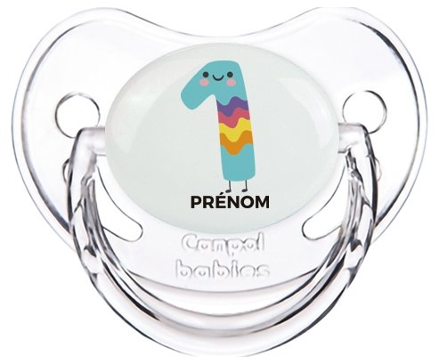 Sucette personnalisée pour bébé avec le design : un an anniversaire style 2 + prénom à embout Physiologique en silicone de la marque Canpol Babies avec impression en en Couleurs de la collection Prénom personnalisé . La silicone se reconnaît par sa couleur transparente. C'est une matière souple, douce, sans goût ni odeur et offre à bébé une succion plus facile grâce à sa souplesse. Cette sucette est personnalisé avec le prénom ou le texte de votre choix pour plus de fun, pour ne plus la perdre ou la confondre avec celle d’un autre bébé. Chouchouter votre bébé avec cette totote design mixte qui convient pour les garçons comme pour les filles. Les tétines bébés sont un accessoire indispensable pour votre enfant. En effet, elles permettent d'apaiser votre bébé, de le réconforter et de calmer ses pleurs. Pour trouver le modèle qui vous convient. Su7.fr vous propose une large gamme de tetine personnalisée et presque une cinquantaine de couleurs. Sélectionnez la sucette qui correspondra le mieux à votre bébé. Attention : veillez à bien choisir la sucette en fonction de l'âge et de la morphologie de votre enfant. Retrouvez également nos produits de designs dérivés avec cette sucette.