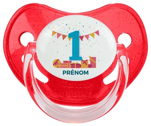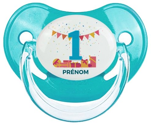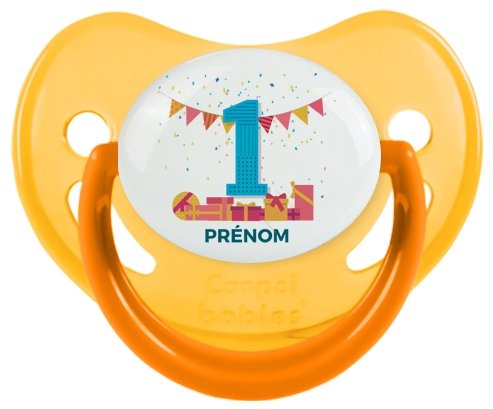 Tetine un an anniversaire style 6 + prénom embout Physiologique