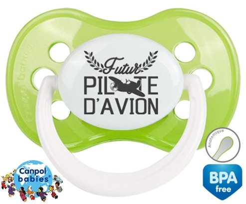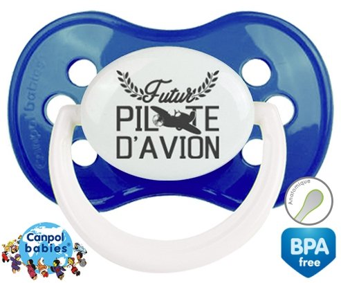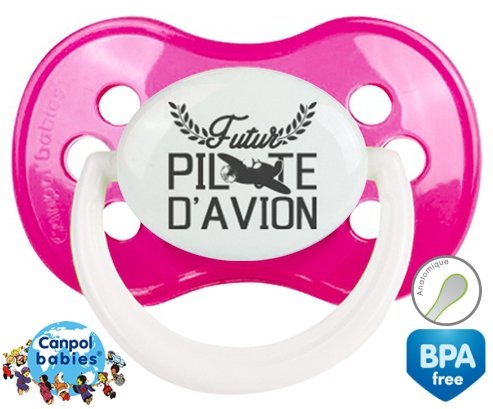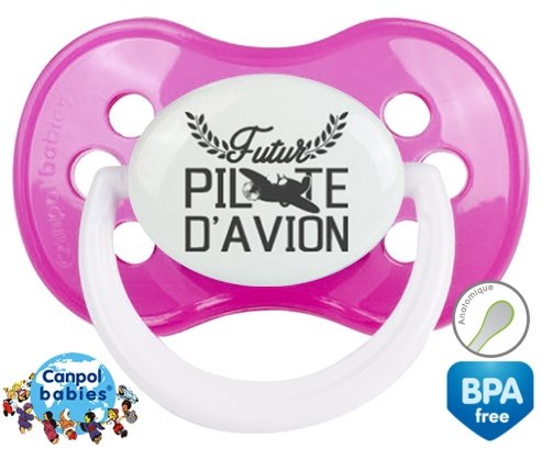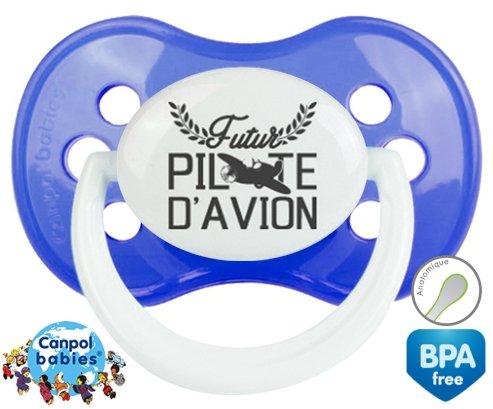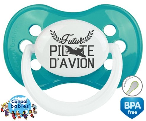 Tetine personnalisee pour bébé Futur pilote d'avion style1 : Embout Anatomique en silicone de la marque Canpol Babies avec impression en gris.