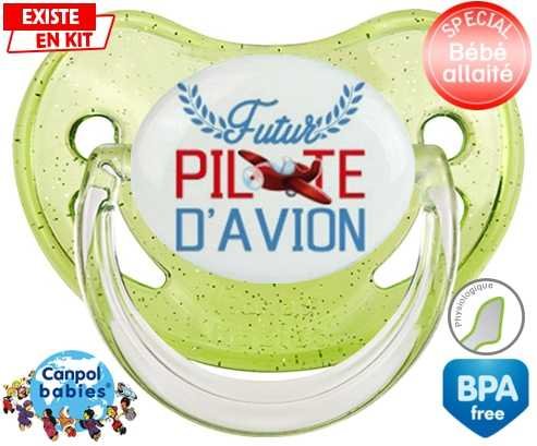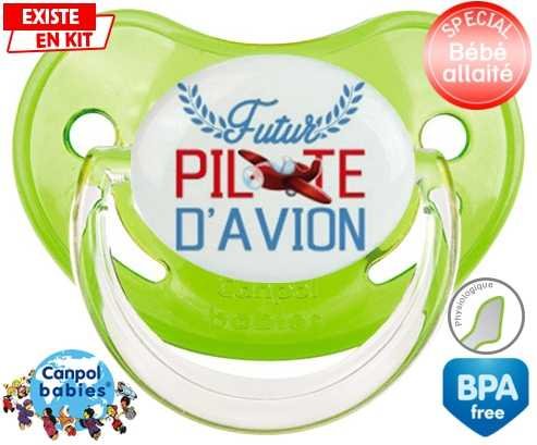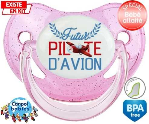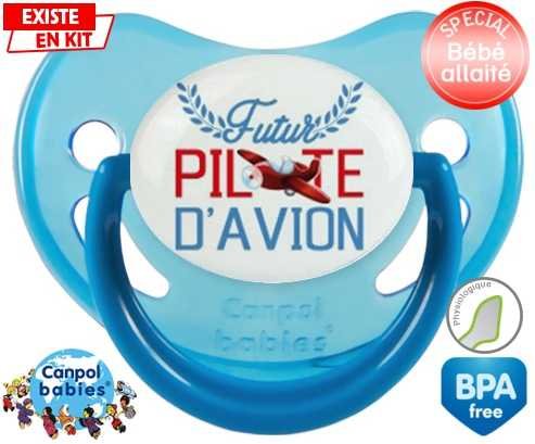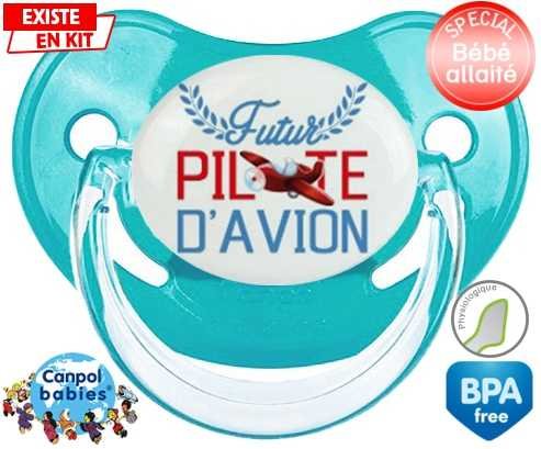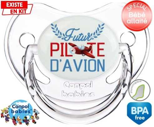 Tétine personnalisée pour bébé Futur pilote d'avion style2 à embout Physiologique en silicone de la marque Canpol Babies avec impression en en Couleurs de la collection Futur / Future.La silicone se reconnaît par sa couleur transparente. C'est une matière souple, douce, sans goût ni odeur et offre à bébé une succion plus facile grâce à sa souplesse.