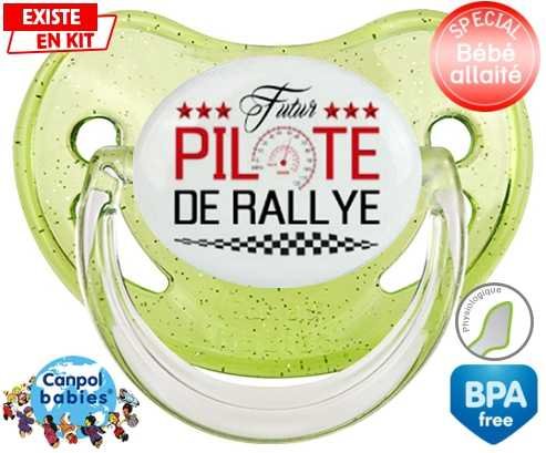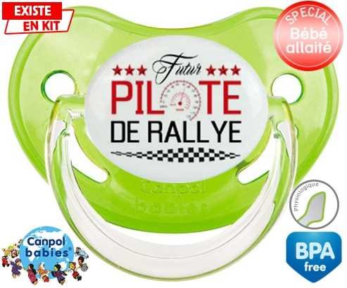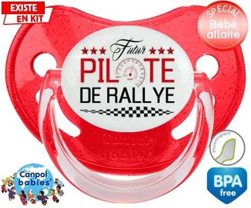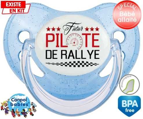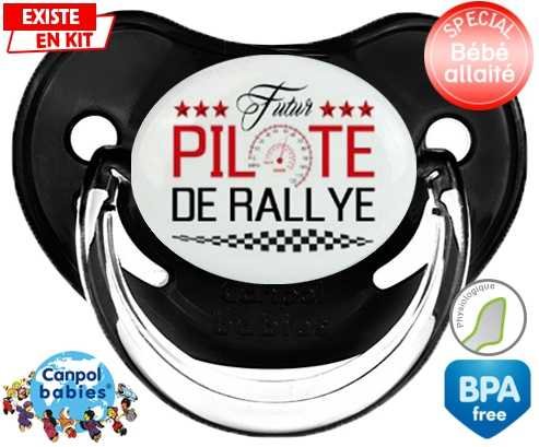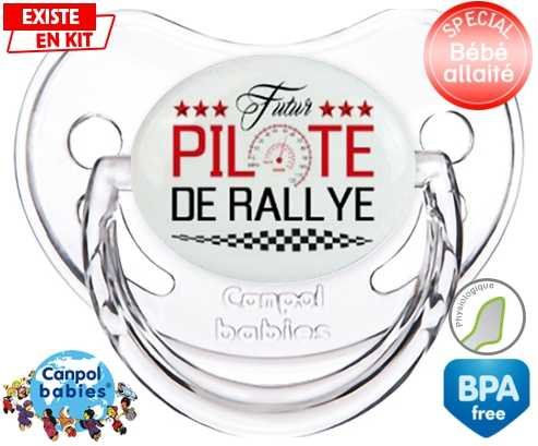 Sucette personnalisée pour bébé Futur pilote de rallye style2 à embout Physiologique en silicone de la marque Canpol Babies avec impression en en Couleurs de la collection Futur / Future.La silicone se reconnaît par sa couleur transparente. C'est une matière souple, douce, sans goût ni odeur et offre à bébé une succion plus facile grâce à sa souplesse.