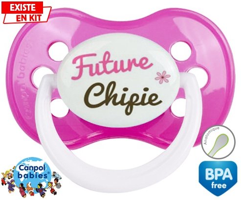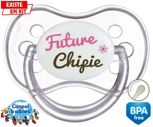 Sucette personnalisée pour bébé Future chipie à embout Anatomique en silicone de la marque Canpol Babies avec impression en en Couleurs de la collection Futur / Future.La silicone se reconnaît par sa couleur transparente. C'est une matière souple, douce, sans goût ni odeur et offre à bébé une succion plus facile grâce à sa souplesse.