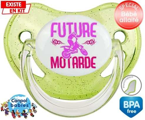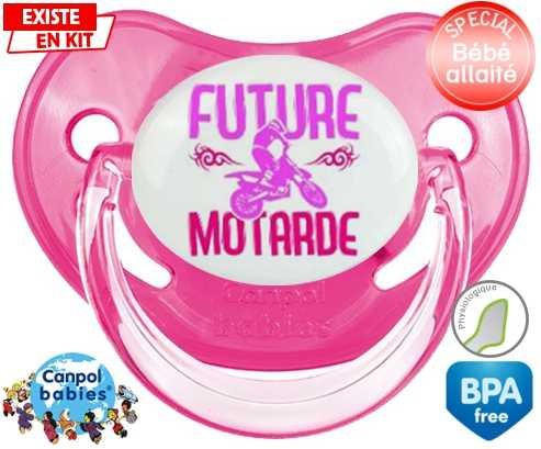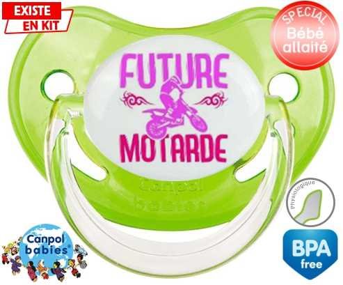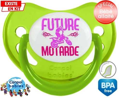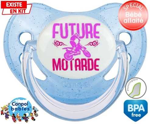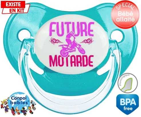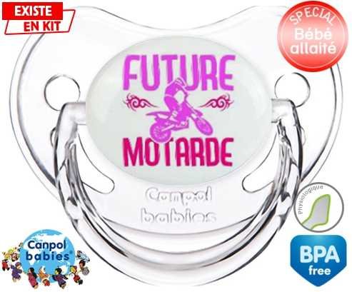 Sucette personnalisée pour bébé Future motarde style2 à embout Physiologique en silicone de la marque Canpol Babies avec impression en en Couleurs de la collection Futur / Future.La silicone se reconnaît par sa couleur transparente. C'est une matière souple, douce, sans goût ni odeur et offre à bébé une succion plus facile grâce à sa souplesse.