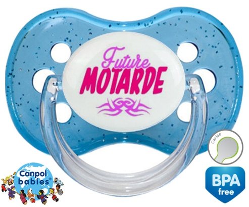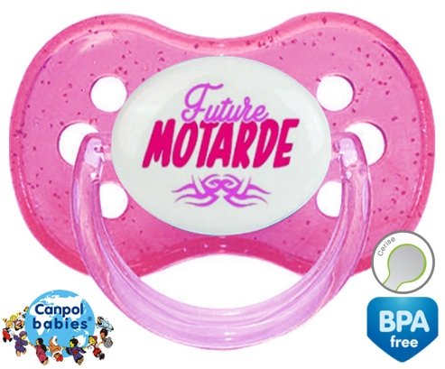 Sucette personnalisée pour bébé Future motarde tribal à embout Cerise en silicone de la marque Canpol Babies avec impression en en Couleurs de la collection Futur / Future.La silicone se reconnaît par sa couleur transparente. C'est une matière souple, douce, sans goût ni odeur et offre à bébé une succion plus facile grâce à sa souplesse.