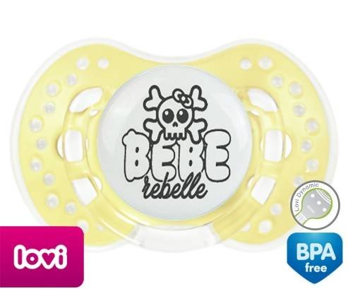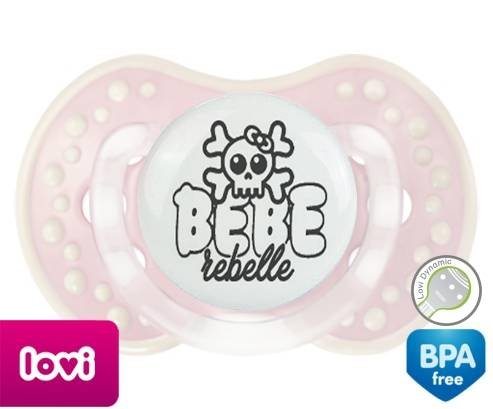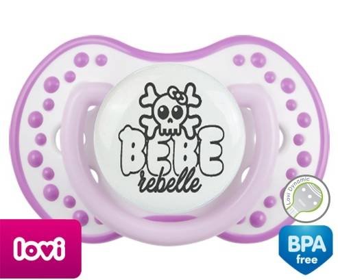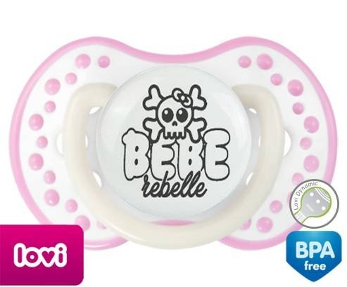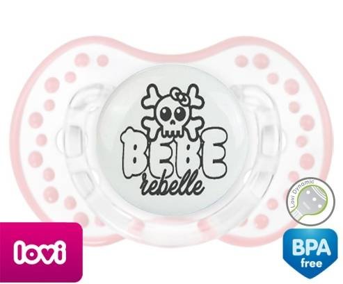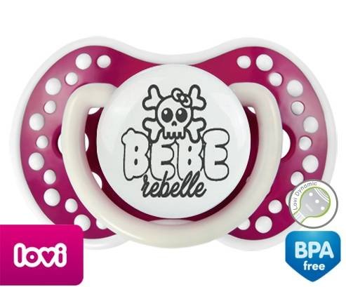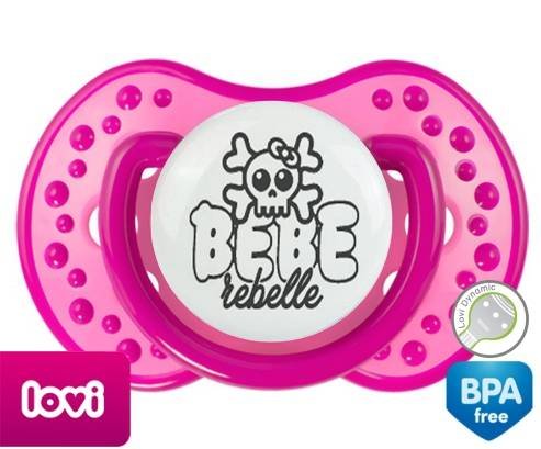 Tétine personnalisée pour bébé Bébé rebelle style1 à embout LOVI Dynamic en silicone de la marque Lovi Dynamic avec impression en en Gris de la collection Humour 4 Saisons.La silicone se reconnaît par sa couleur transparente. C'est une matière souple, douce, sans goût ni odeur et offre à bébé une succion plus facile grâce à sa souplesse.
