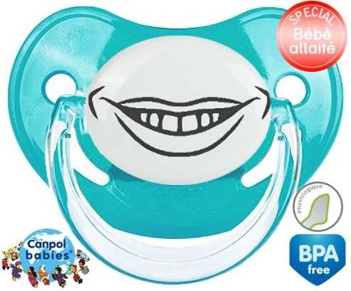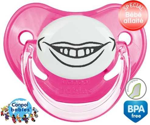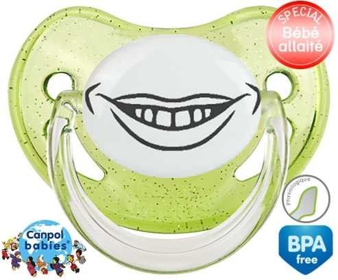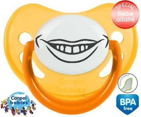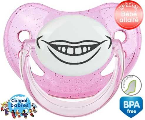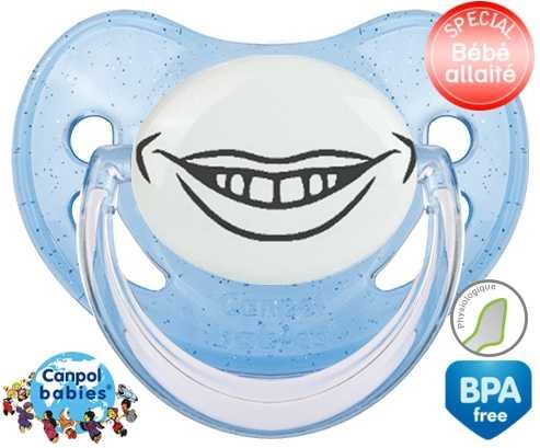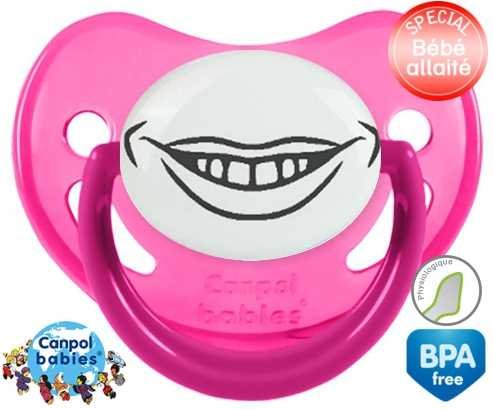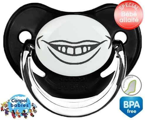 Sucette personnalisée pour bébé Bouche souriante à embout Physiologique en silicone de la marque Canpol Babies avec impression en en Gris de la collection Humour 4 Saisons.La silicone se reconnaît par sa couleur transparente. C'est une matière souple, douce, sans goût ni odeur et offre à bébé une succion plus facile grâce à sa souplesse.