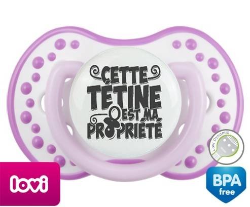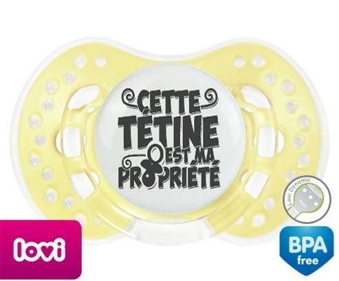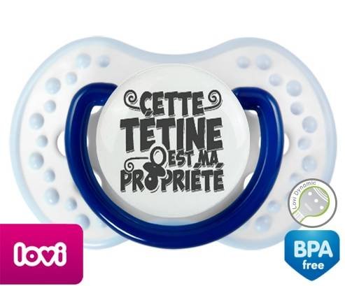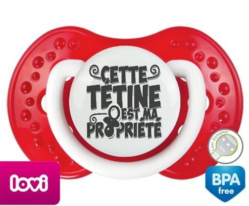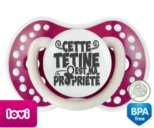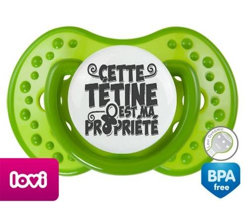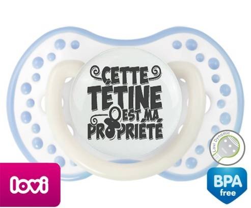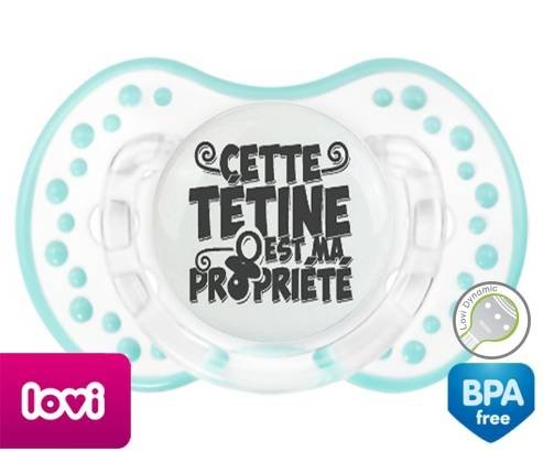 Sucette personnalisée pour bébé Cette sucette est ma propriété style1 à embout LOVI Dynamic en silicone de la marque Lovi Dynamic avec impression en en Gris de la collection Humour 4 Saisons.La silicone se reconnaît par sa couleur transparente. C'est une matière souple, douce, sans goût ni odeur et offre à bébé une succion plus facile grâce à sa souplesse.