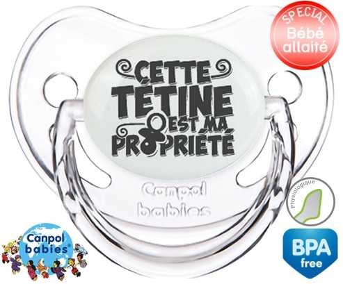 Sucette personnalisée pour bébé Cette sucette est ma propriété style1 à embout Physiologique en silicone de la marque Canpol Babies avec impression en en Gris de la collection Humour 4 Saisons.La silicone se reconnaît par sa couleur transparente. C'est une matière souple, douce, sans goût ni odeur et offre à bébé une succion plus facile grâce à sa souplesse.