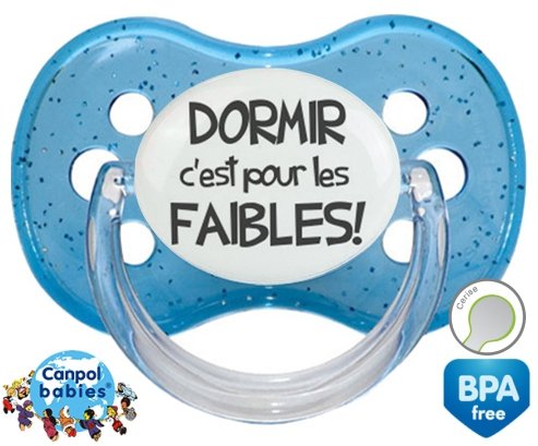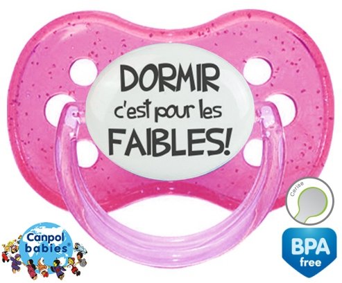 Tetine personnalisee pour bébé Dormir c'est pour les faibles à embout Cerise en silicone de la marque Canpol Babies avec impression en en Gris de la collection Humour 4 Saisons.La silicone se reconnaît par sa couleur transparente. C'est une matière souple, douce, sans goût ni odeur et offre à bébé une succion plus facile grâce à sa souplesse.