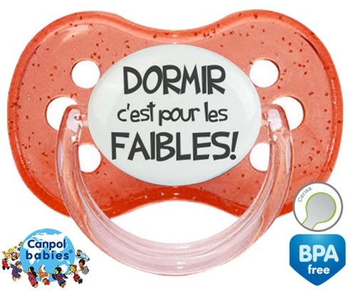 Tetine personnalisee pour bébé Dormir c'est pour les faibles : Embout Ceriseen silicone de la marque Canpol Babies avec impression en Gris.