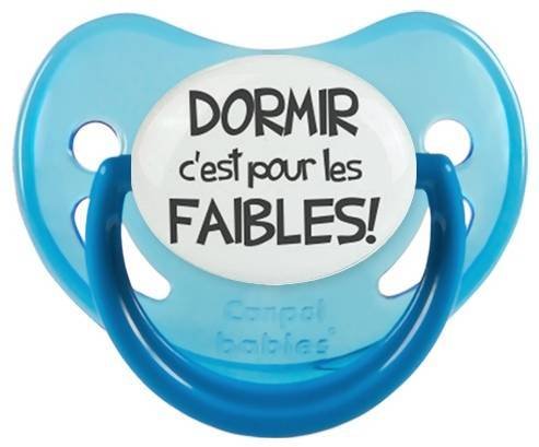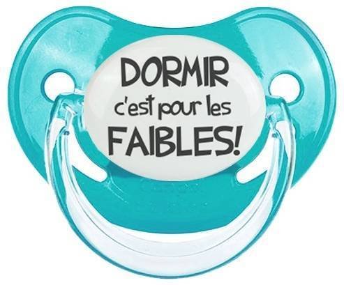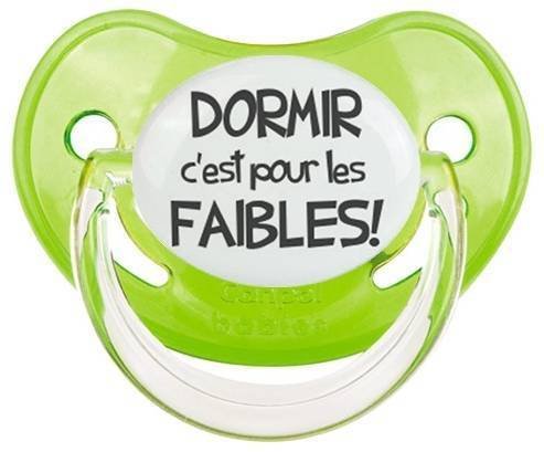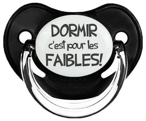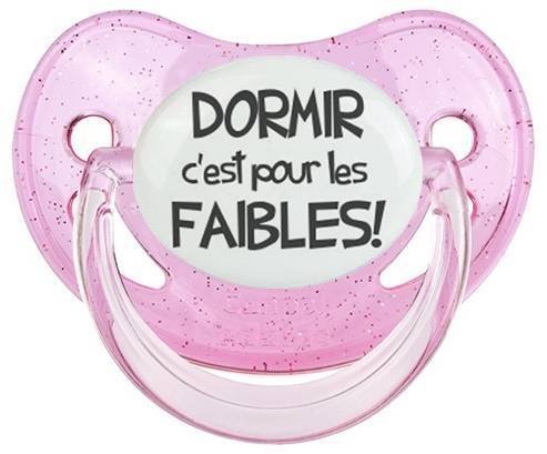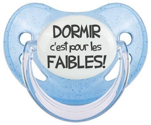 Offrez à votre bébé une tétine personnalisée alliant confort et originalité. L’embout physiologique, doux et légèrement incurvé, respecte parfaitement le développement naturel de la bouche. Le design humoristique « Dormir c’est pour les faibles » apporte une touche de malice tout en restant discret, imprimé avec soin en gris pour un style mixte. Idéale pour les moments de tendresse et la douceur du quotidien.