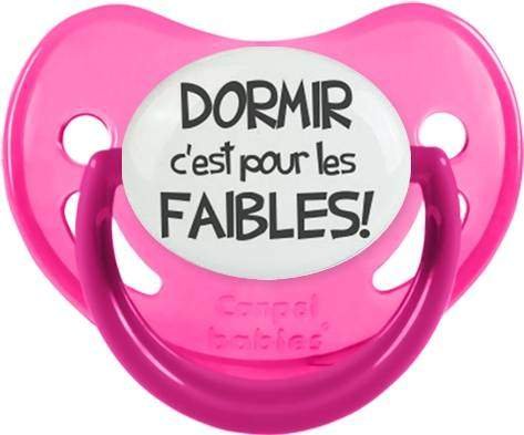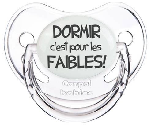 Sucette personnalisée pour bébé Dormir c'est pour les faibles à embout Physiologique en silicone de la marque Canpol Babies avec impression en en Gris de la collection Humour 4 Saisons.La silicone se reconnaît par sa couleur transparente. C'est une matière souple, douce, sans goût ni odeur et offre à bébé une succion plus facile grâce à sa souplesse.