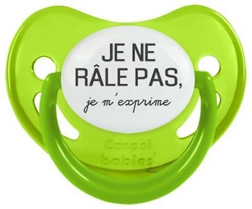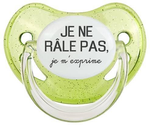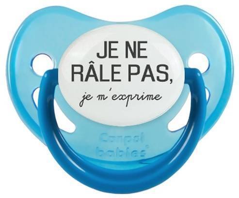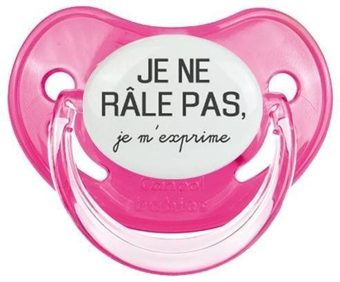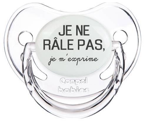 Sucette personnalisée pour bébé Je ne râle pas je m'exprime style1 à embout Physiologique en silicone de la marque Canpol Babies avec impression en en Gris de la collection Humour 4 Saisons.La silicone se reconnaît par sa couleur transparente. C'est une matière souple, douce, sans goût ni odeur et offre à bébé une succion plus facile grâce à sa souplesse.