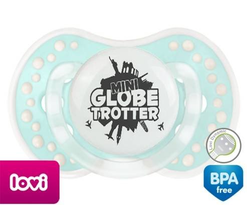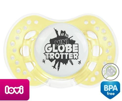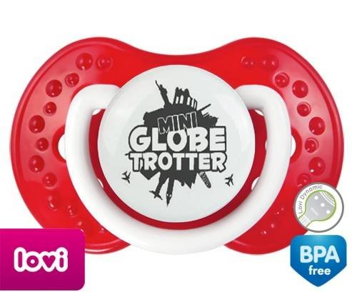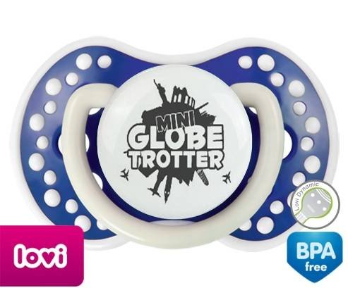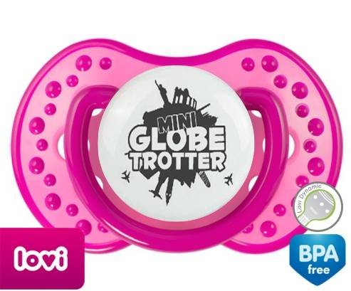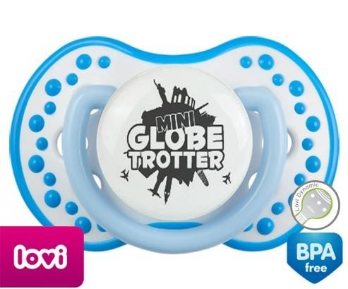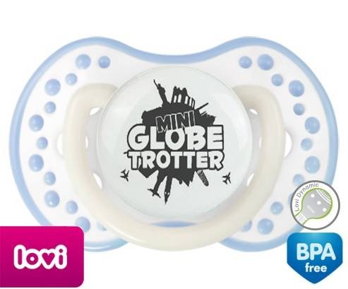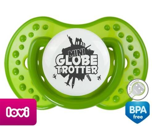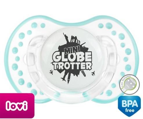 Sucette personnalisée pour bébé Mini globe trotter à embout LOVI Dynamic en silicone de la marque Lovi Dynamic avec impression en en Gris de la collection Humour 4 Saisons.La silicone se reconnaît par sa couleur transparente. C'est une matière souple, douce, sans goût ni odeur et offre à bébé une succion plus facile grâce à sa souplesse.