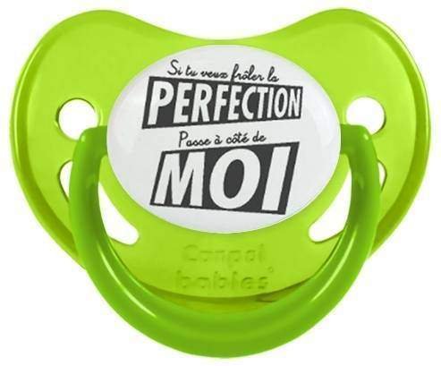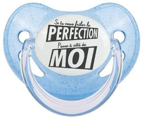 Tetine personnalisee pour bébé Si tu veux frôler la perfection à embout Physiologique en silicone de la marque Canpol Babies avec impression en en Gris de la collection Humour 4 Saisons.La silicone se reconnaît par sa couleur transparente. C'est une matière souple, douce, sans goût ni odeur et offre à bébé une succion plus facile grâce à sa souplesse.