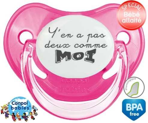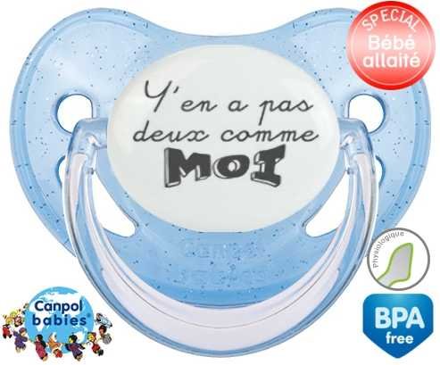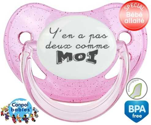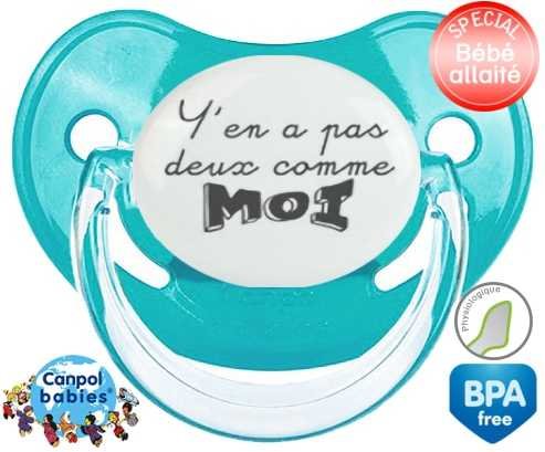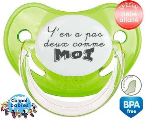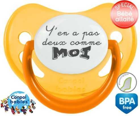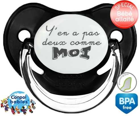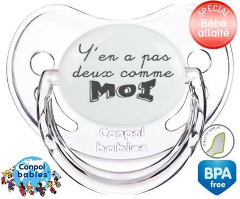 Sucette personnalisée pour bébé Y'en a pas deux comme moi : Sucette Physiologique en silicone de la marque Canpol Babies avec impression en gris.