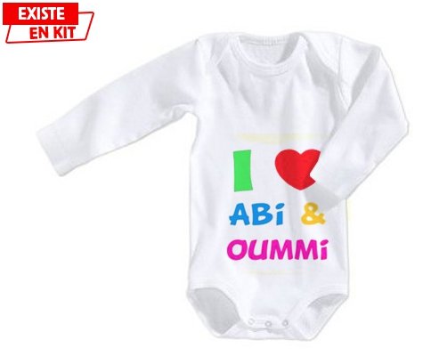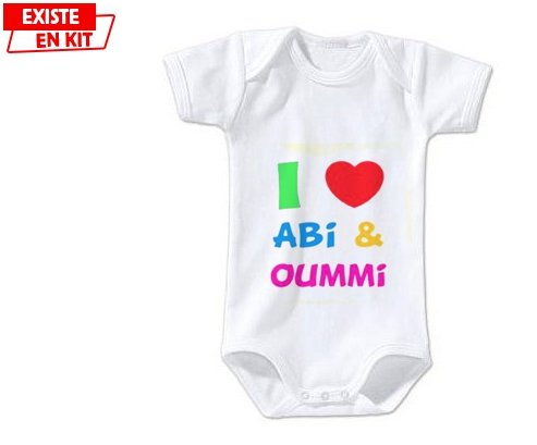 Body personnalisé I love abi et oummi avec impression en couleur de fabrication européenne et composés à 100 % du coton le plus doux, il est également conçu pour être aussi pratique que joli.