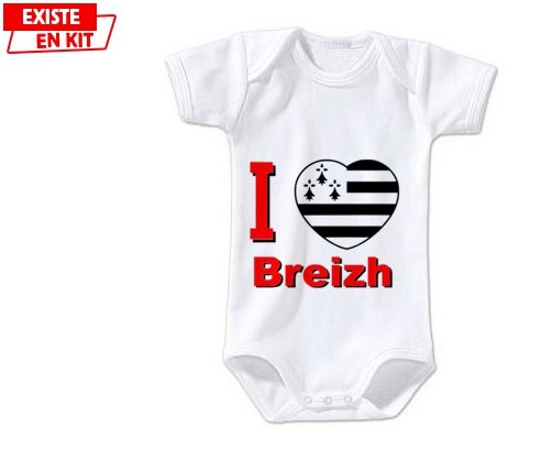 Body personnalisé I love Breizh avec impression en couleur de fabrication européenne et composés à 100 % du coton le plus doux, il est également conçu pour être aussi pratique que joli.