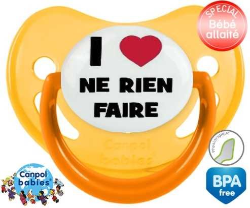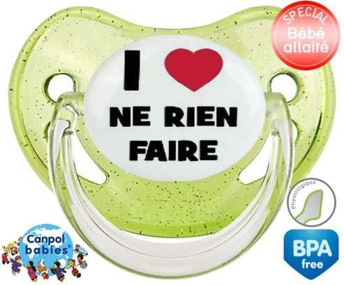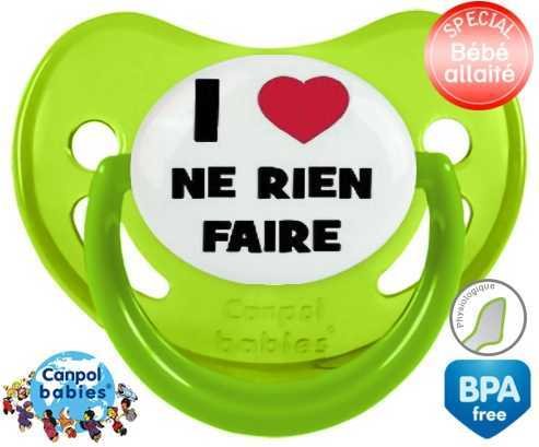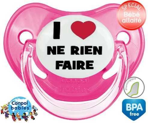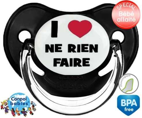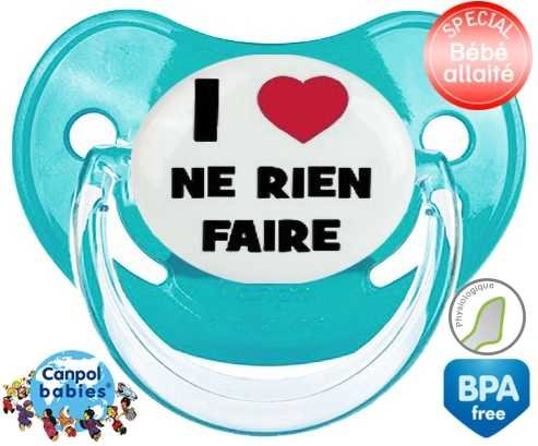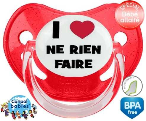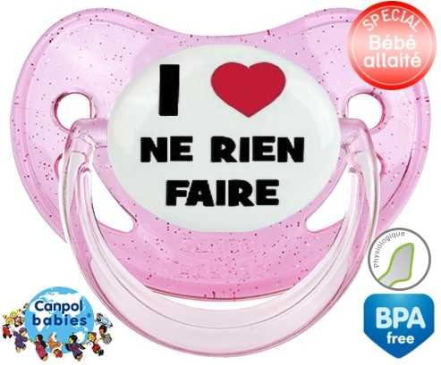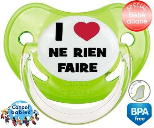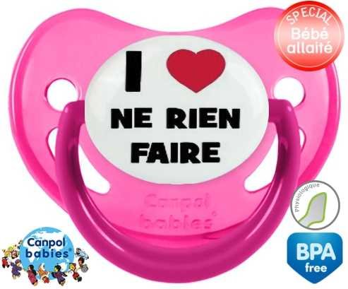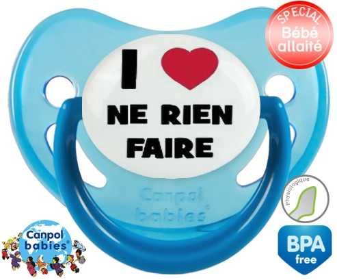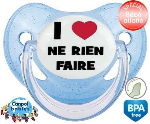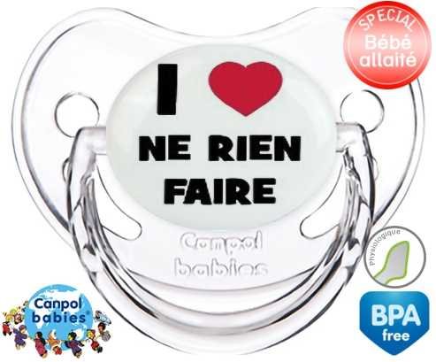 Sucette personnalisée pour bébé I love ne rien faire à embout Physiologique en silicone de la marque Canpol Babies avec impression en en Couleurs de la collection I love / I like.La silicone se reconnaît par sa couleur transparente. C'est une matière souple, douce, sans goût ni odeur et offre à bébé une succion plus facile grâce à sa souplesse.