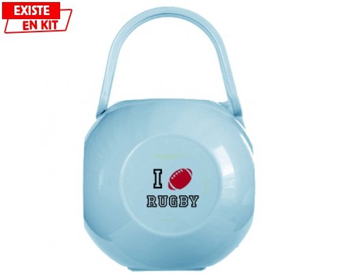 Boîte à sucette avec design : I love rugby style1 , impression de qualité et en couleur. Pratique : elle transporte la sucette en tout lieu. Grâce à sa poignée souple, elle est facile à accrocher à la poussette, sac à langer ... Cette boîte de rangement flexible, est la solution hygiénique pour protéger les sucettes de son enfant quand il ne les utilise pas. Peut contenir jusqu'à deux sucettes.